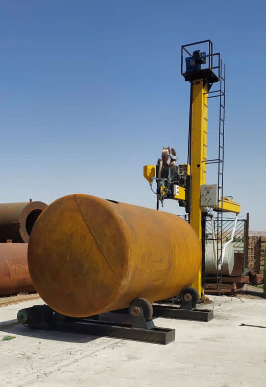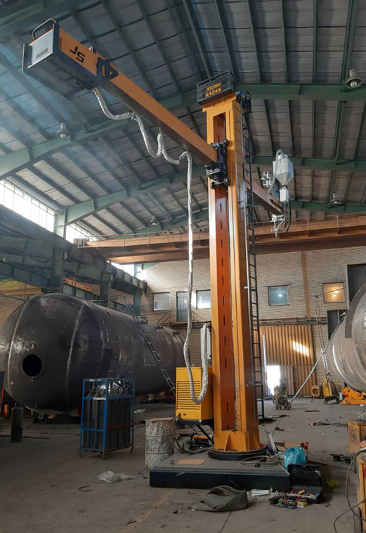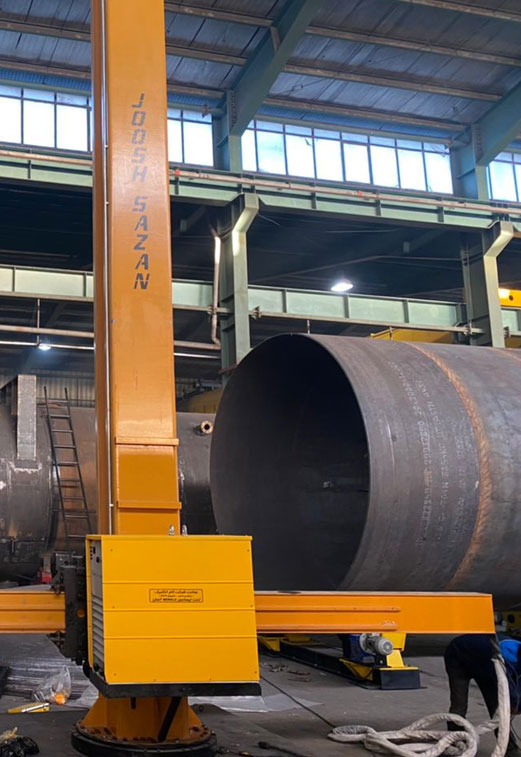 عملکرد این دستگاه به این شکل است که یک ستون در مرکز شاسی با وزن بالا قرار گرفته و ارتفاع ستون متناسب با قطر و اندازه سازه قابل تغییر است و یک بوم در جهت مخالف و زاویه قائم معمولاً به همان اندازه یا بزرگتر روی ستون نصب می شود که قابلیت حرکت در محور طولی را دارد ، تجهیزات جوش با فرایندهای مختلف مانند جوش زیرپودری ، جوش اسلگ و … بر روی آن نصب شده تا بتوان به شکل ساده تر و با سرعت بالا عملیات جوشکاری را انجام دهد.